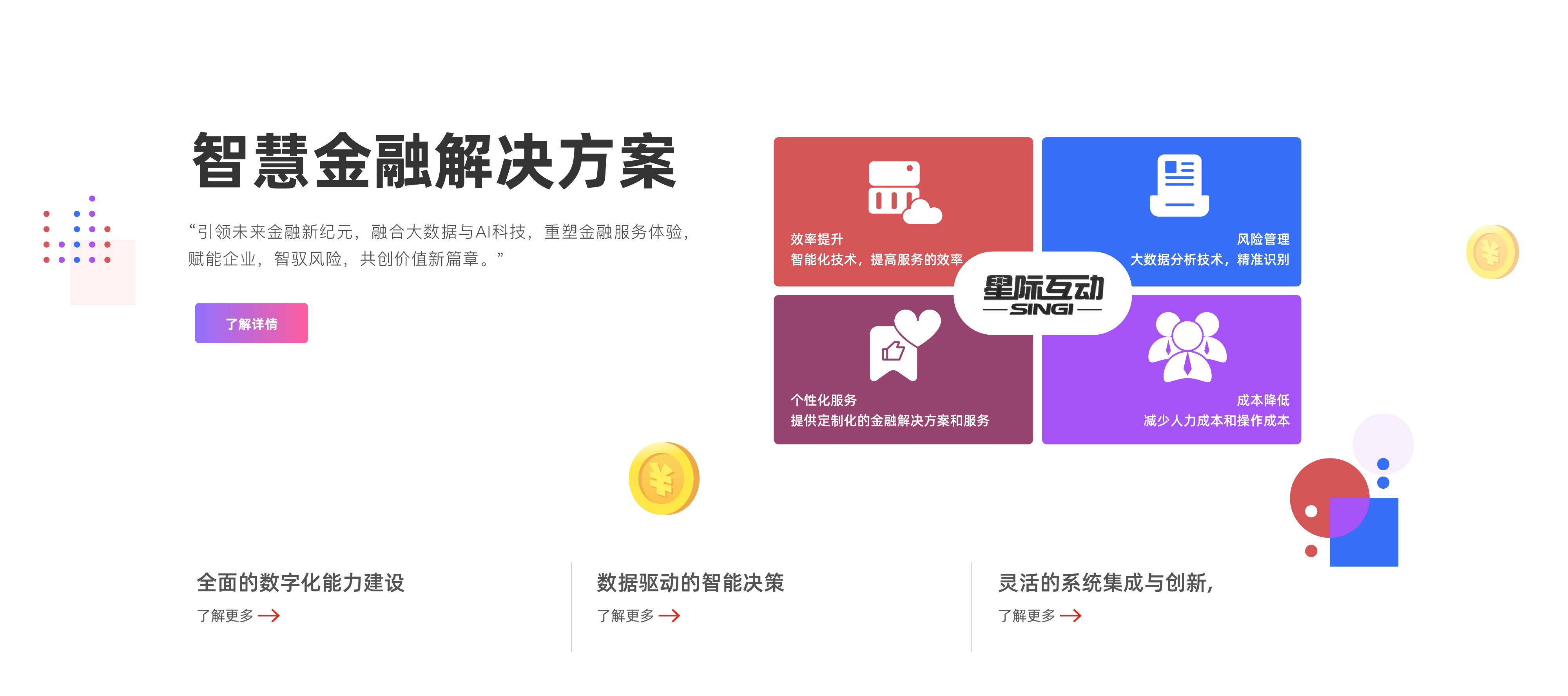 智慧金融解决方案是运用大数据、AI等前沿技术,优化金融服务流程,提升风险防控能力,实现个性化服务与高效运营,推动金融行业智能化转型的综合方案。